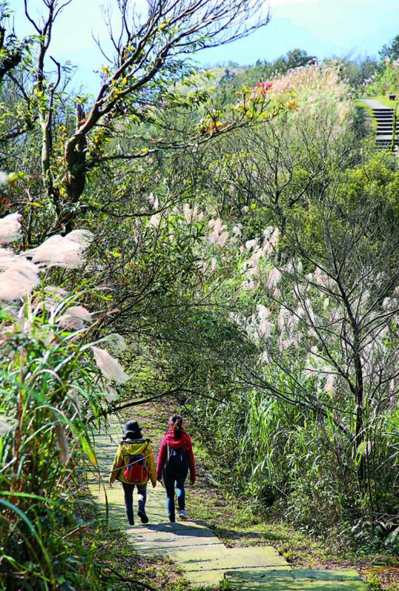 平溪五分山的步道沿著稜線打造,兩旁有芒草夾岸,步道景觀相當優美。(記者沈昱嘉/攝影)