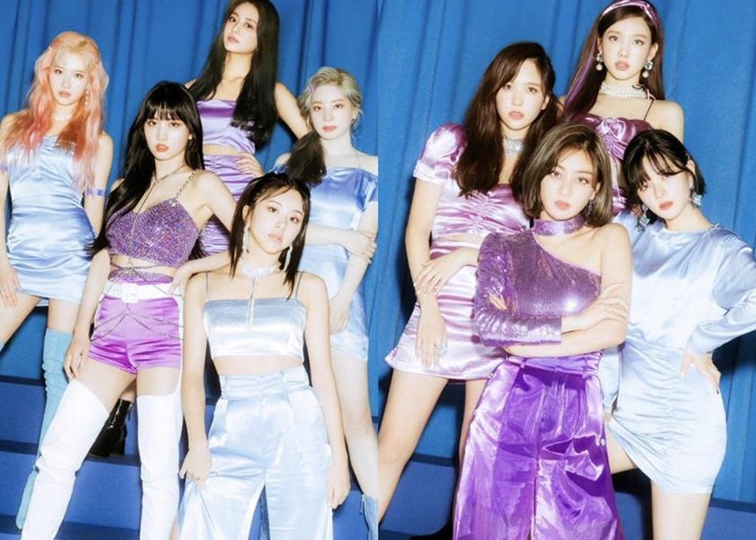 韓國夯團 TWICE 馬不停蹄的為新專輯宣傳,同時又曝光了新的團體造型,可見團員們全都穿上紫色系緞面的服裝,其中周子瑜疑似洋裝太緊身又太短,內襯的小可愛及安全褲幾乎曝光了。
